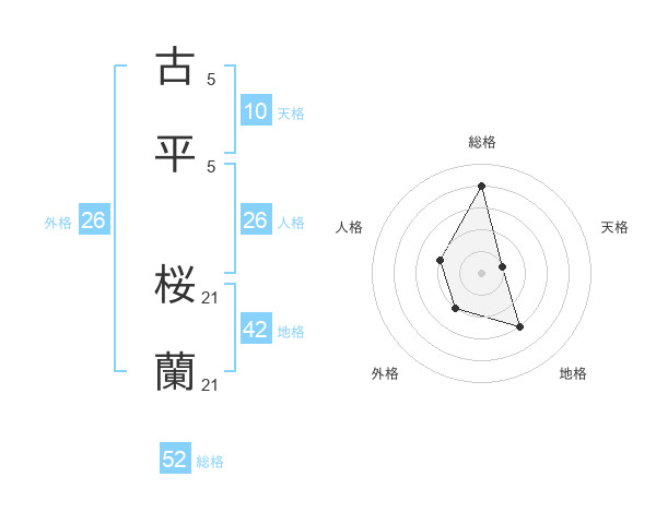 古平 桜蘭さんを姓名の画数から五運を鑑定