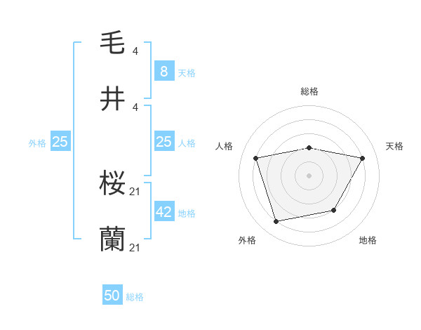 毛井 桜蘭さんの総格は50画の2点