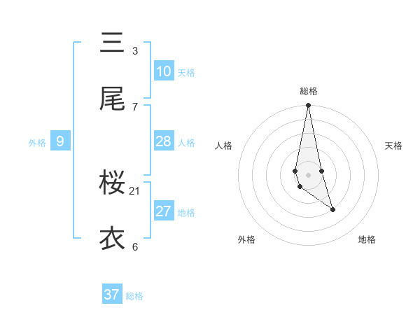 三尾 桜衣さんを姓名の画数から五運を鑑定