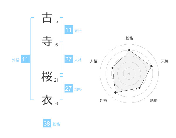 古寺 桜衣さんを姓名の画数から五運を鑑定