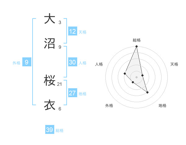 大沼 桜衣さんの総格は39画の5点
