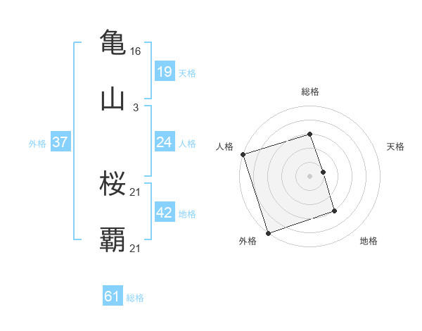 亀山 桜覇さんを姓名の画数から五運を鑑定