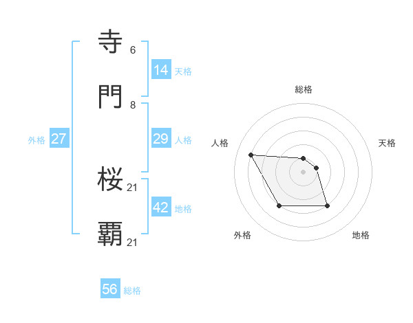 寺門 桜覇さんの天格は14画の1点!
