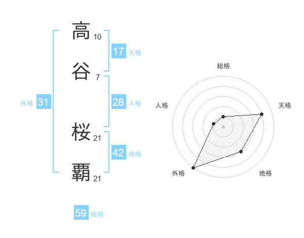 高谷 桜覇さんを姓名の画数から五運を鑑定