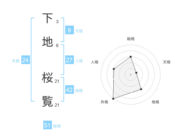 下地 桜覧さんの総格は51画の3点!