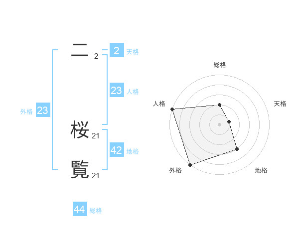 二 桜覧さんの総格は44画の2点!