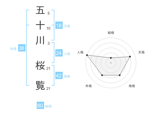 五十川 桜覧さんを姓名の画数から五運を鑑定
