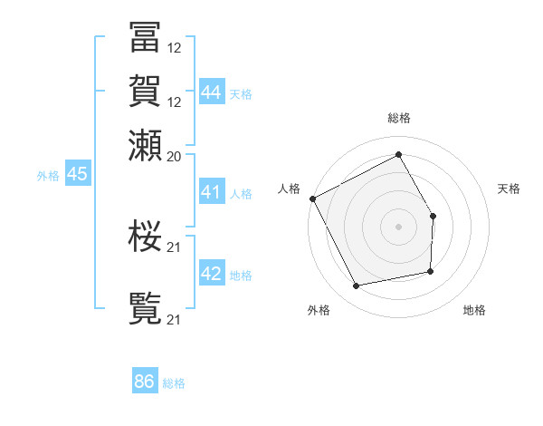 冨賀瀬 桜覧さんの総格は86画の4点!