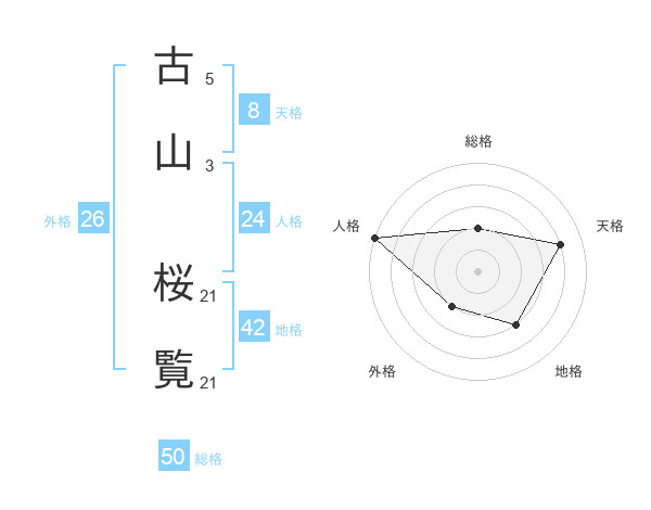 古山 桜覧さんを姓名の画数から五運を鑑定
