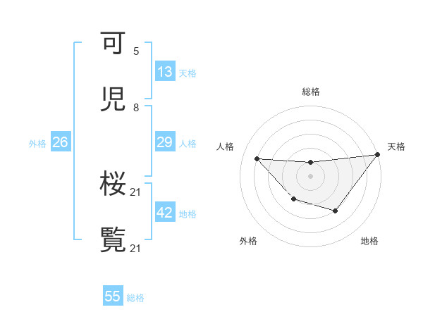 可児 桜覧さんを姓名の画数から五運を鑑定