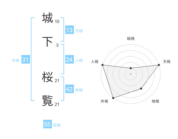 城下 桜覧さんを姓名の画数から五運を鑑定