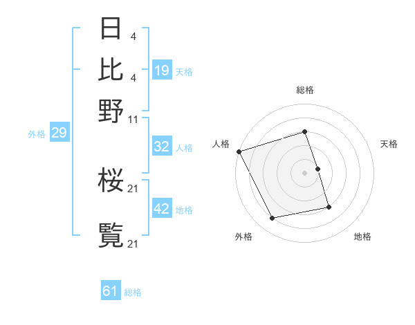 日比野 桜覧さんを姓名の画数から五運を鑑定