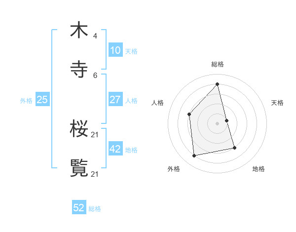 木寺 桜覧さんを姓名の画数から五運を鑑定