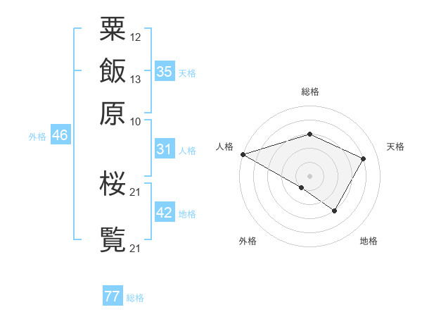 粟飯原 桜覧さんを姓名の画数から五運を鑑定