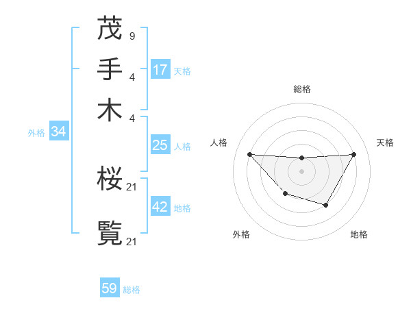 茂手木 桜覧さんを姓名の画数から五運を鑑定