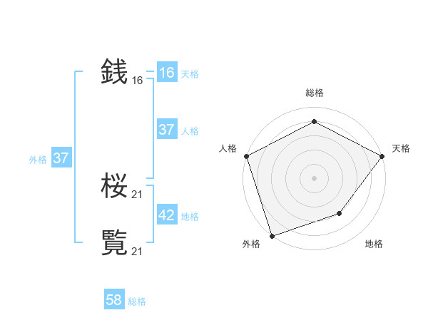 銭 桜覧さんを姓名の画数から五運を鑑定