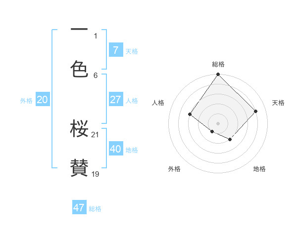 一色 桜賛さんを姓名の画数から五運を鑑定