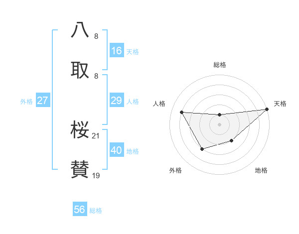 八取 桜賛さんを姓名の画数から五運を鑑定