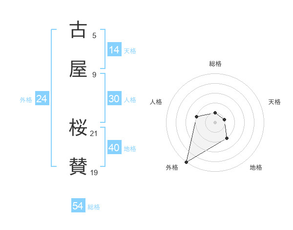 古屋 桜賛さんを姓名の画数から五運を鑑定
