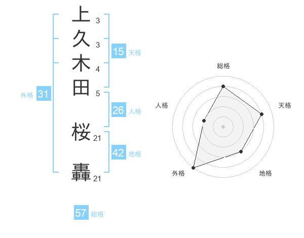 上久木田 桜轟さんを姓名の画数から五運を鑑定
