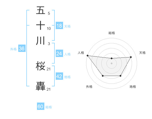 五十川 桜轟さんを姓名の画数から五運を鑑定