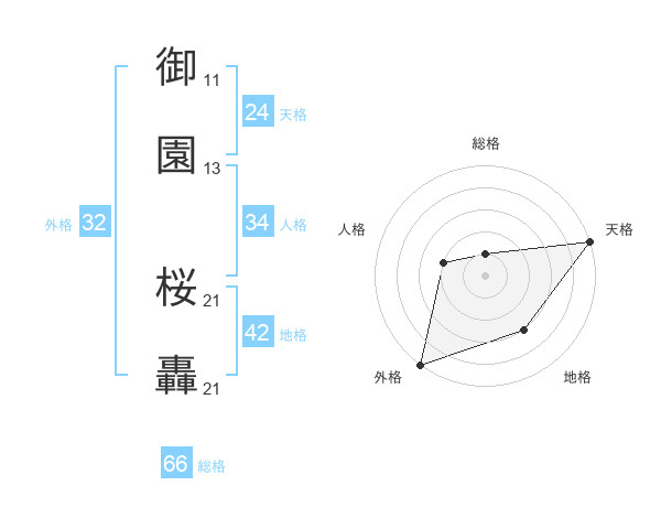 御園 桜轟さんの総格は66画の1点!