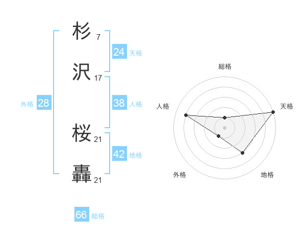 杉沢 桜轟さんを姓名の画数から五運を鑑定