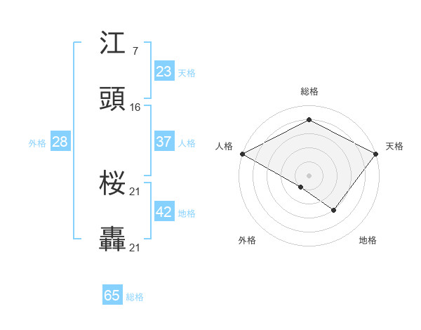 江頭 桜轟さんを姓名の画数から五運を鑑定
