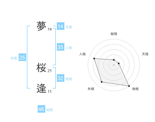夢 桜逢さんの地格は32画の5点!