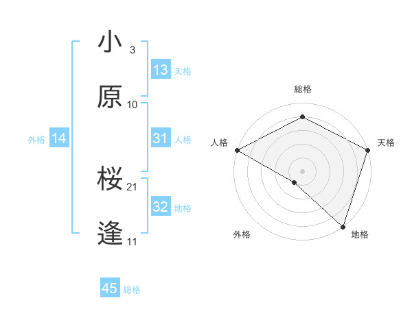 小原 桜逢さんの総格は45画の4点!
