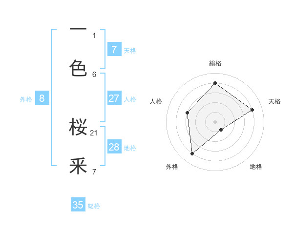 一色 桜釆さんを姓名の画数から五運を鑑定