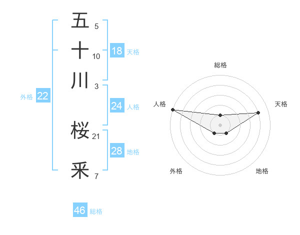 五十川 桜釆さんの天格は18画の4点!