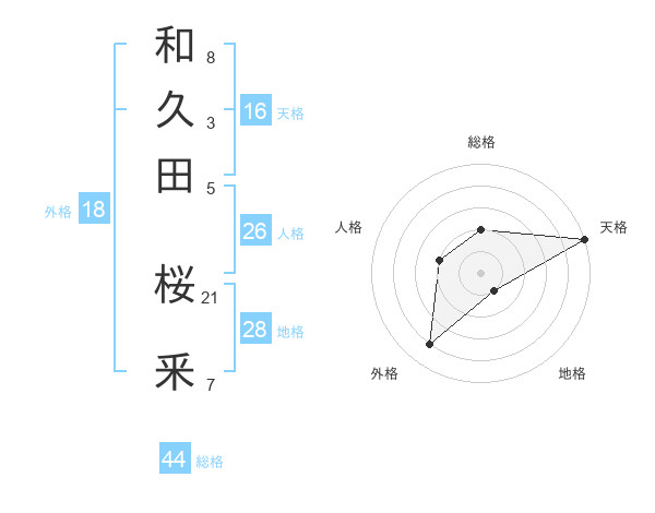 和久田 桜釆さんの天格は16画の5点!