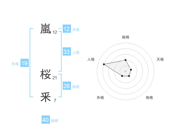 嵐 桜釆さんの総格は40画の2点!