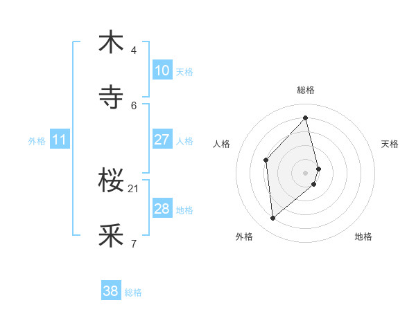 木寺 桜釆さんの総格は38画の4点!