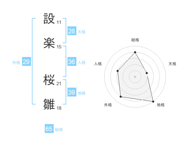 設楽 桜雛さんを姓名の画数から五運を鑑定