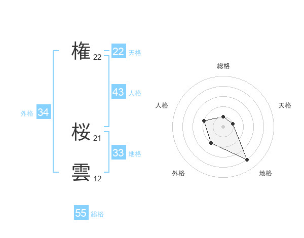 権 桜雲さんの総格は55画の1点!