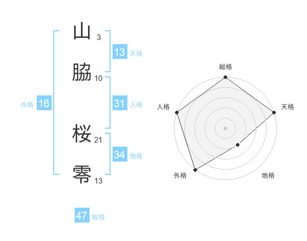 山脇 桜零さんを姓名の画数から五運を鑑定