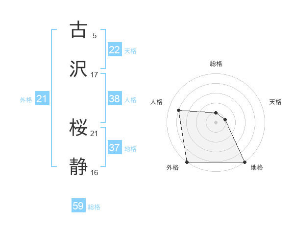 古沢 桜静さんの外格は21画の5点!