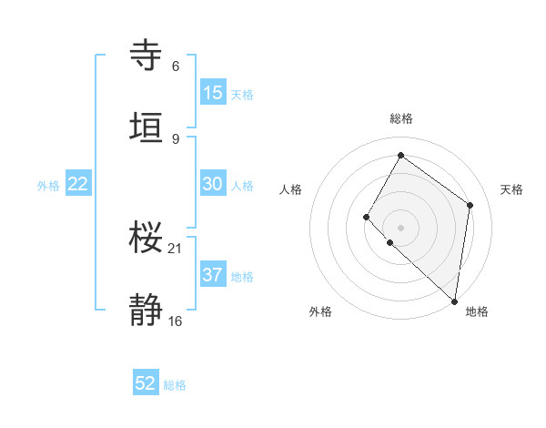寺垣 桜静さんを姓名の画数から五運を鑑定