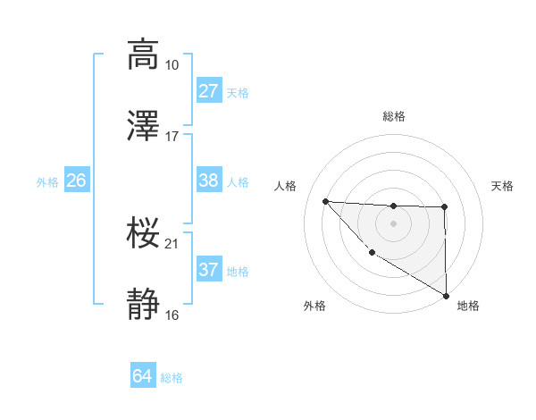 高澤 桜静さんを姓名の画数から五運を鑑定
