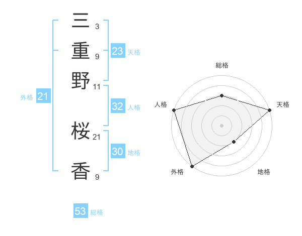 三重野 桜香さんを姓名の画数から五運を鑑定
