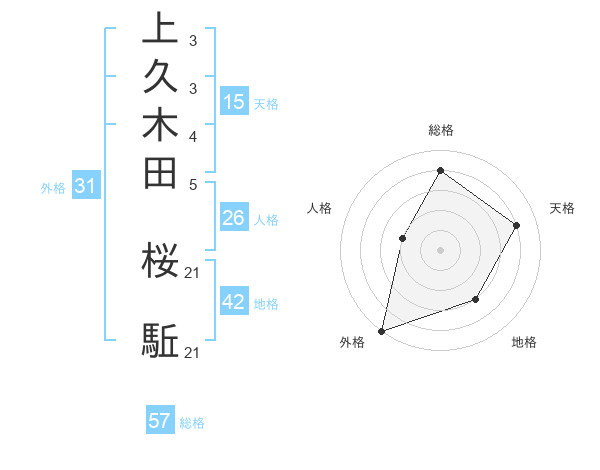 上久木田 桜駈さんを姓名の画数から五運を鑑定