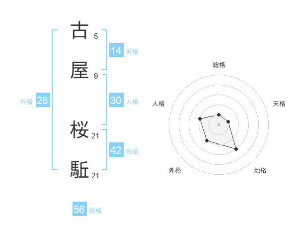 古屋 桜駈さんを姓名の画数から五運を鑑定