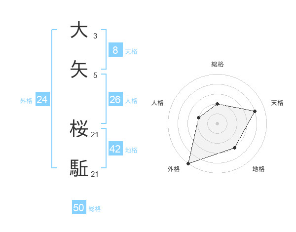 大矢 桜駈さんを姓名の画数から五運を鑑定