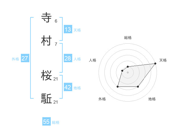 寺村 桜駈さんを姓名の画数から五運を鑑定