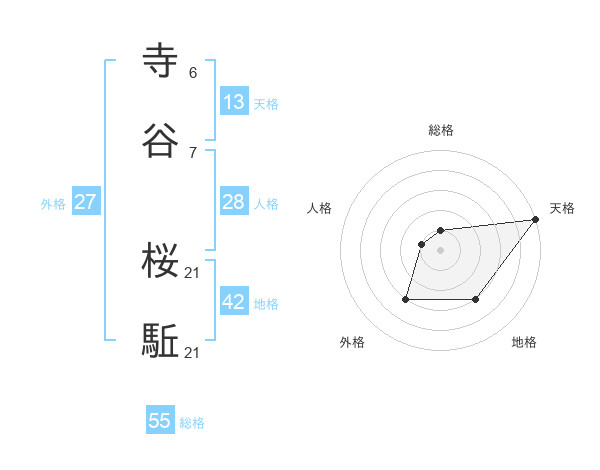 寺谷 桜駈さんを姓名の画数から五運を鑑定