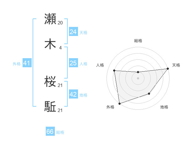 瀬木 桜駈さんの総格は66画の1点!