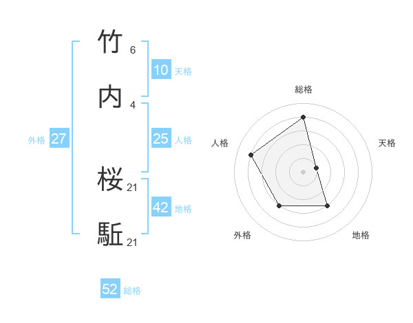 竹内 桜駈さんを姓名の画数から五運を鑑定