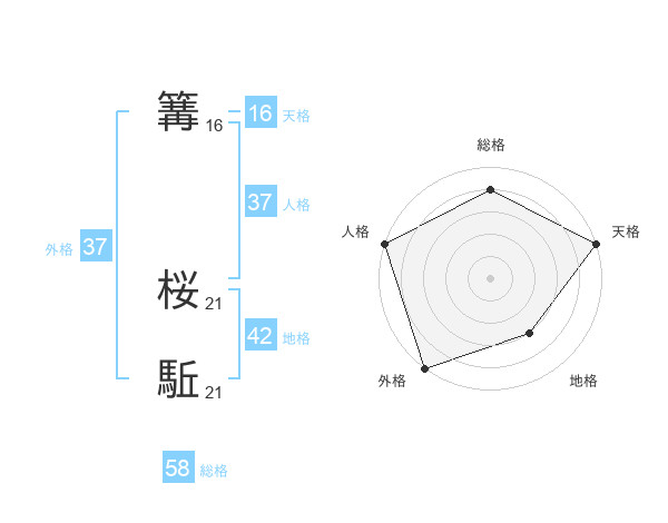 篝 桜駈さんの総格は58画の4点!